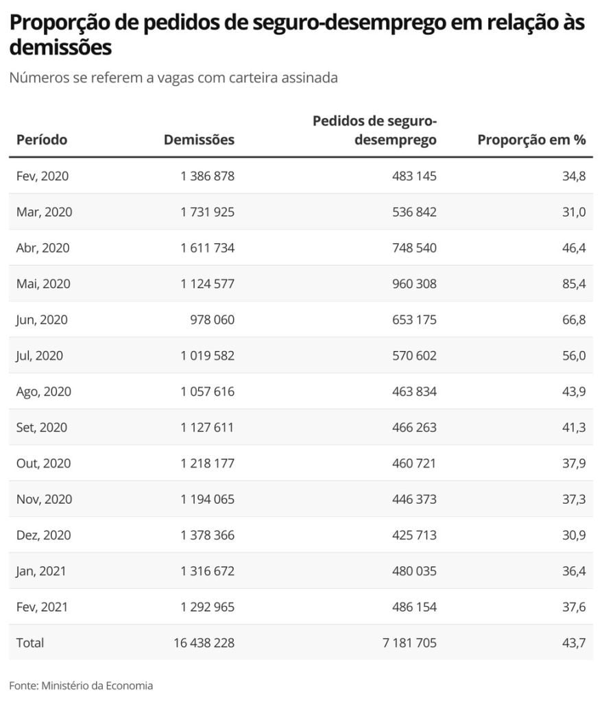 No acumulado entre fevereiro de 2020 e fevereiro de 2021, dentro dos 16,4 milhões de desligamentos, foram 7,2 milhões de pedidos, menos da metade do total.